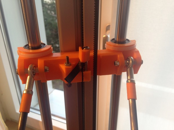 Danach Schlitten mit Kabelbinder an Lineare Kugellager montieren