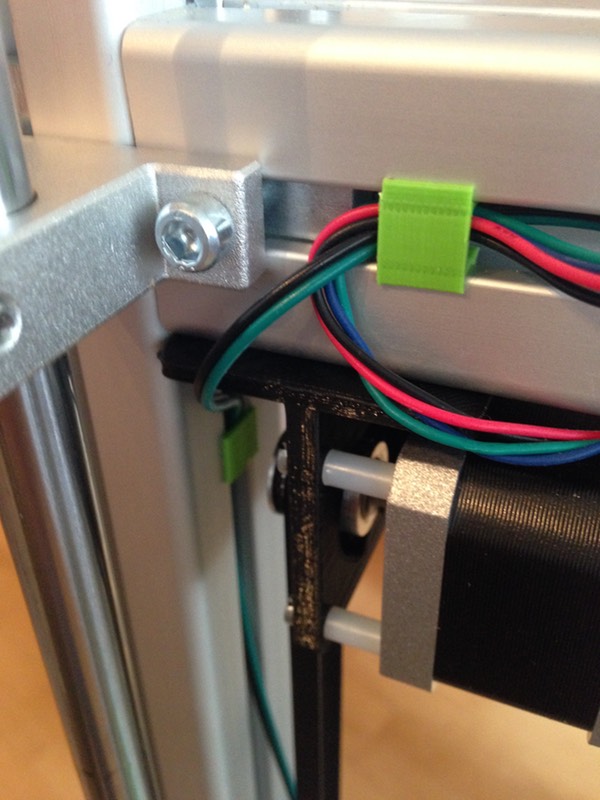 Dle Motorenkabel zusammen mit den Enschalterkabeln mit einer Kabelklemme wie auf Foto in das Aluprofil einfügen und festklemmen.